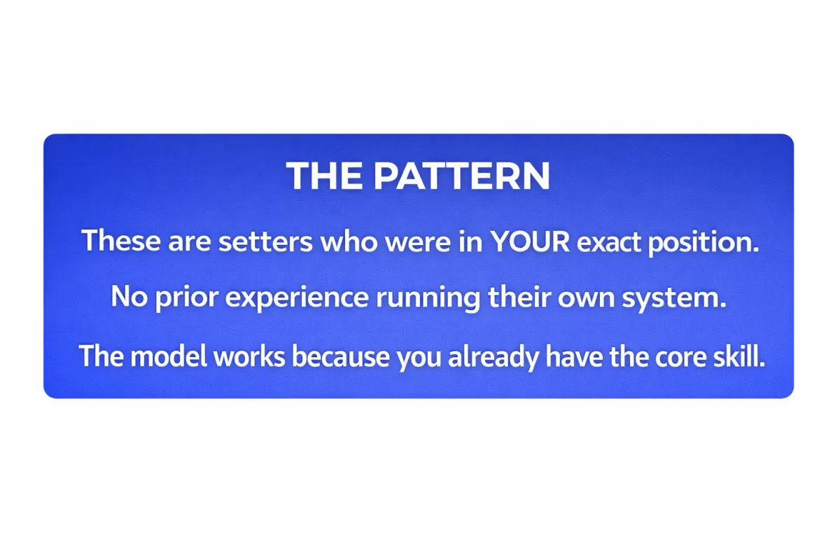 On average, setters who implement what we teach land their first client within 21 days. That's three weeks. Quinton did it in one week. Sulimar had three paying clients within three weeks. It depends on how quickly you implement.